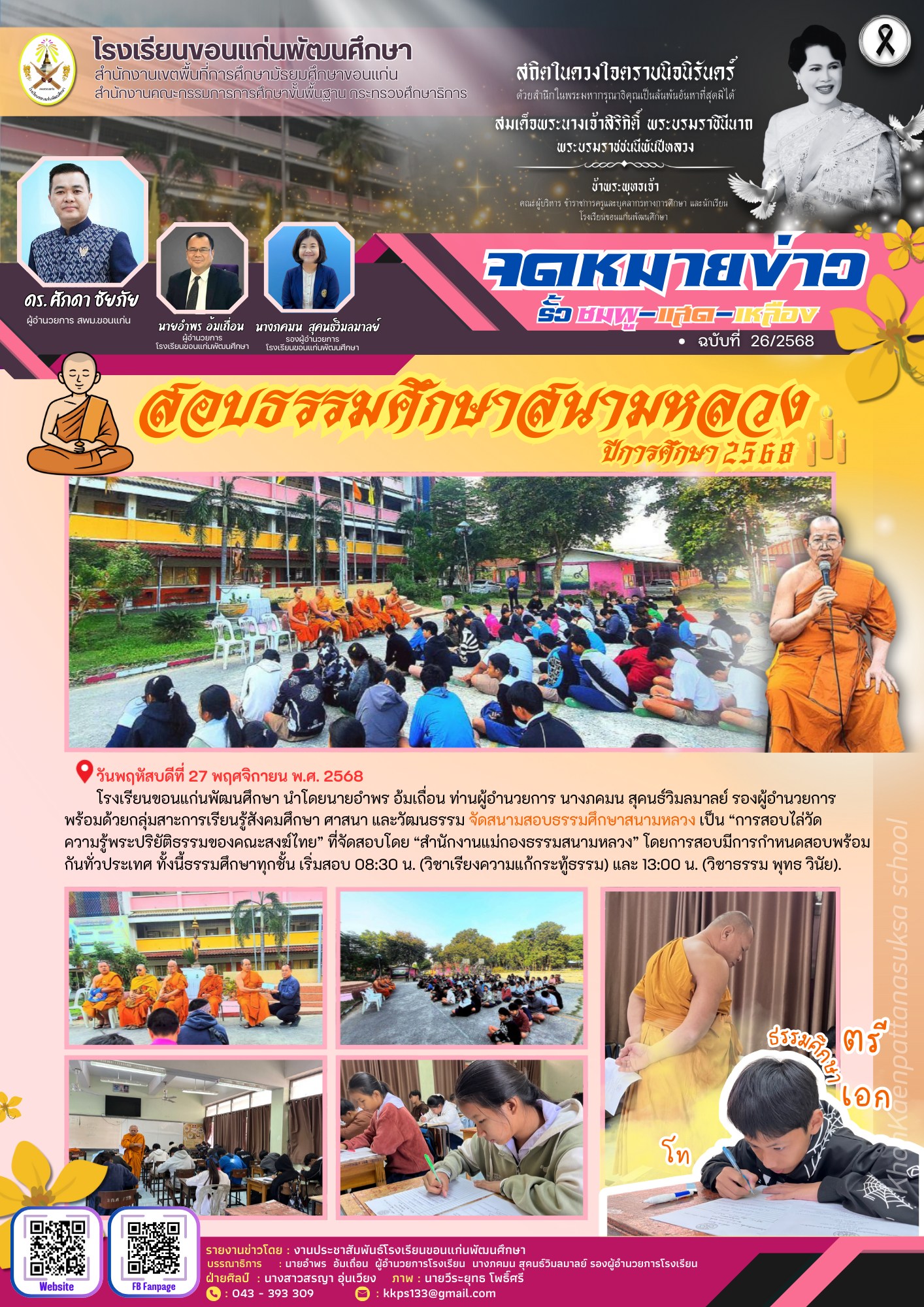 สอบธรรมศึกษาสนามหลวง ปีการศึกษา 2568